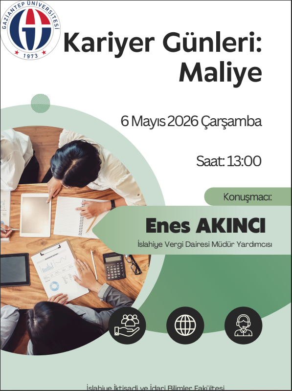 Fakültemizde, İslahiye Vergi Dairesi Başkan Yardımcısı Enes Akıncı'nın katılımıyla düzenlenecek olan "Kariyer Günleri: Maliye" seminerine tüm öğrencilerimiz davetlidir.