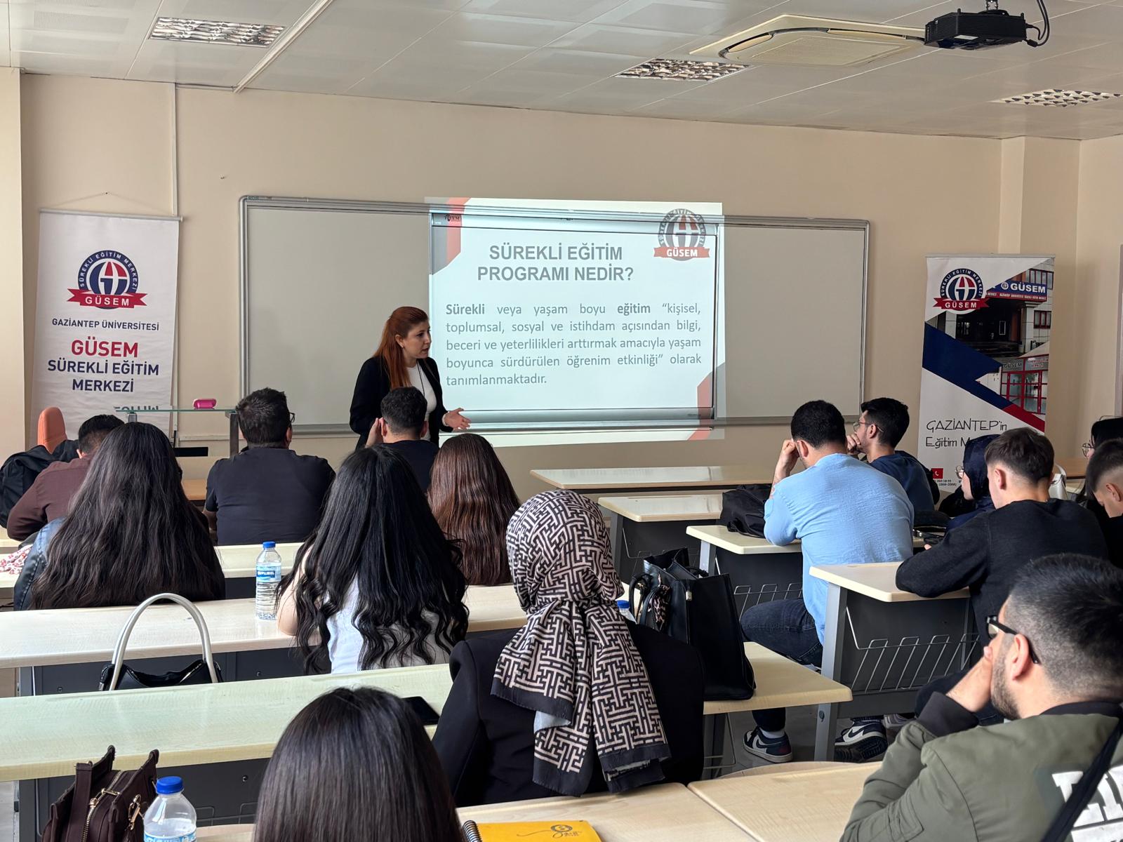 Gaziantep University Continuing Education Center (GÜSEM) held a comprehensive information and promotional meeting for the students of our faculty. At the event organized on April 22, 2026, in the Farabi Classroom, ways to make a difference in the business world after graduation and the opportunities offered by GÜSEM were discussed.
